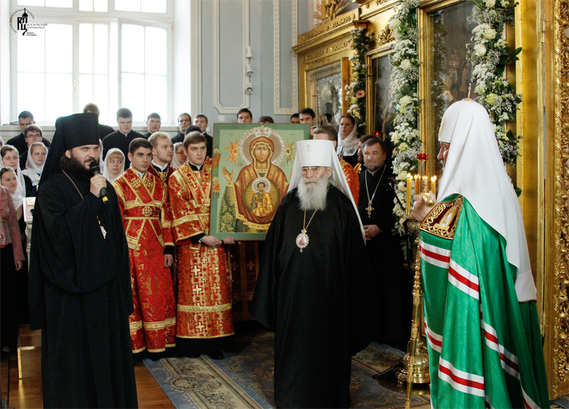 Далее проводилось кропотливое восстановление церковной утвари академического храма. Многие предметы для академического храма владыка ректор приобретал за личные средства. Икона «Знамение-Царскосельская» была украшена панагиями, подаренными ректору разными архиереями.