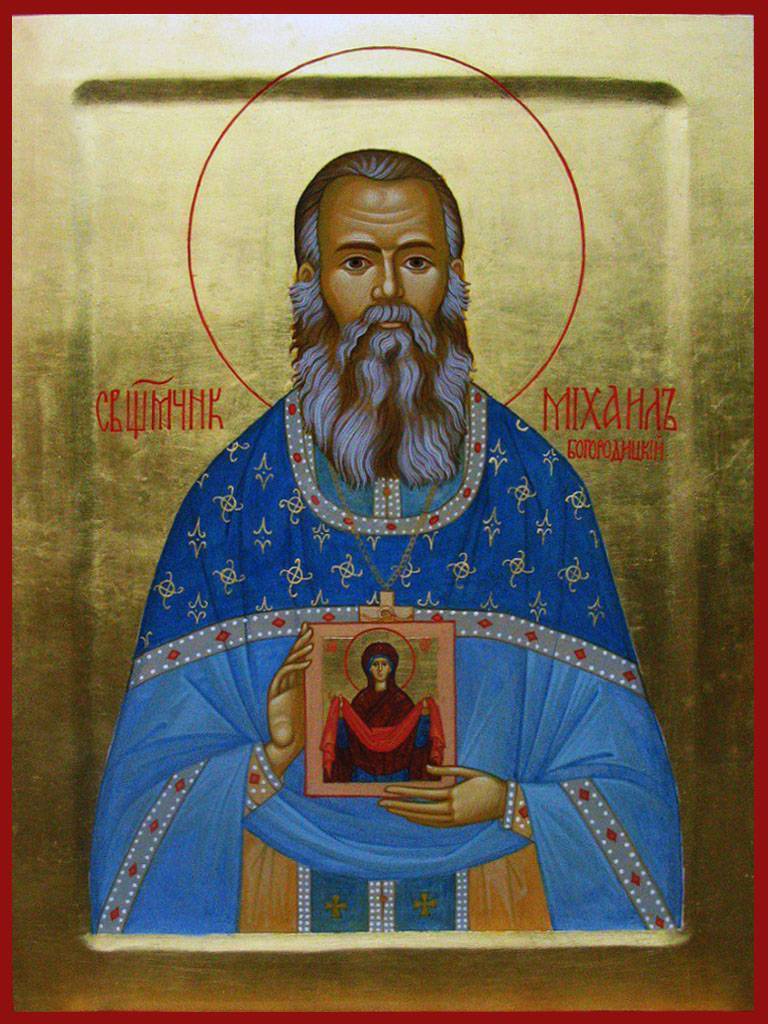 Священномученик Михаил родился 19 сентября 1878 года в селе Молоково Тверской губернии. Его отец, Николай Богородский, был письмоводителем в имении помещика. По окончании Тверской Духовной семинарии Михаил Николаевич был рукоположен в сан священника и служил в храмах Тверской епархии. За безупречное исполнение пастырских обязанностей в апреле 1922 года о. Михаил был награжден Святейшим Патриархом Тихоном наперсным крестом и саном протоиерея.