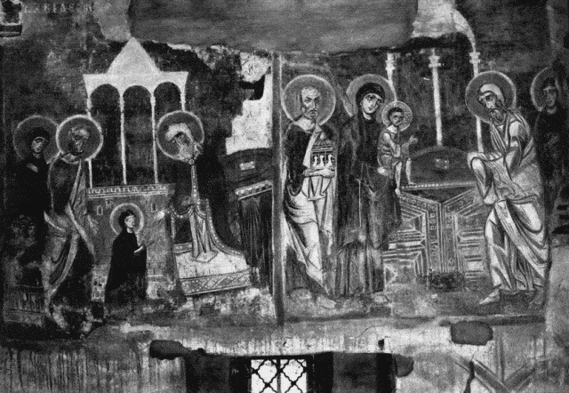Самые древние изображения событий Сретения на Руси — это две фрески XII века. Первая — в Кирилловской церкви в Киеве. Вторая — в церкви Спаса на Нередице в Новгороде. Интересно, что на фреске Кирилловского храма Младенец не сидит, а лежит на руках Богородицы.