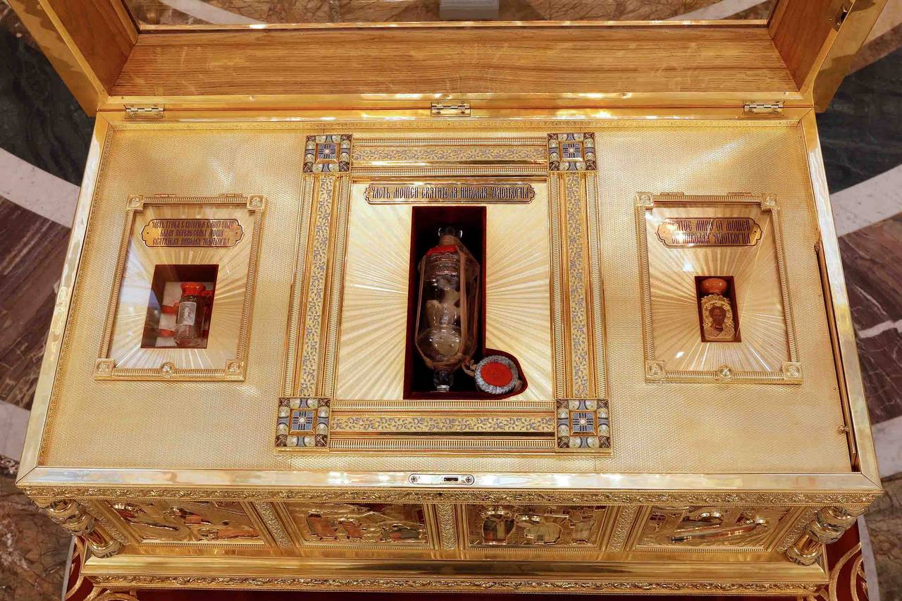 Ковчег с мощами святителя и чудотворца Николая был передан Святейшим Патриархом Кириллом в Воскресенский Новодевичий монастырь Санкт-Петербурга в 2022 году. В данном ковчеге находится большая часть мощей святителя Николая Чудотворца, святое миро от мощей святителя и часть гроба, в котором в 1087 году были перенесены мощи великого угодника Божия (перенесение мощей святителя Николая из Мир Ликийских в Бари, которое празднуется как память святого Николая 22 мая).