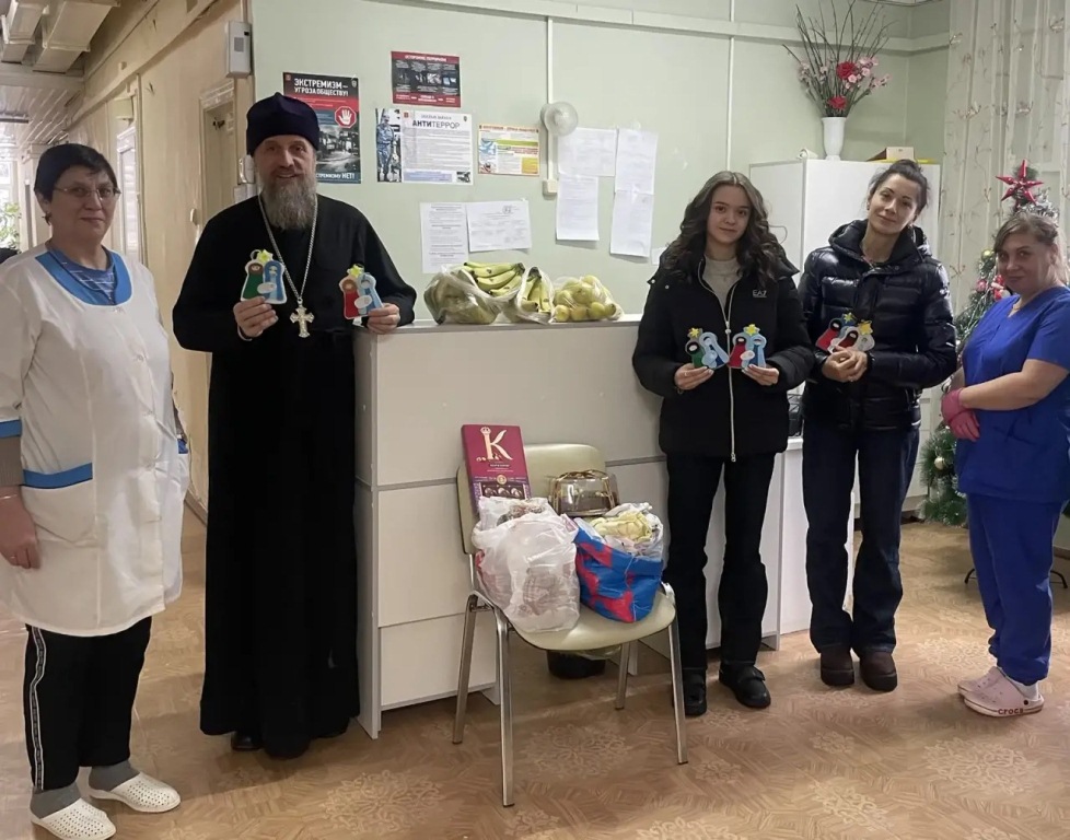 Пациентам спели тропарь и кондак праздника, затем священнослужитель побеседовал с ними, рассказал об истории и традициях Рождества Христова и благословил на грядущий год. Ребята подарили подопечным сладости и мандарины, а также рождественский вертеп из ткани.