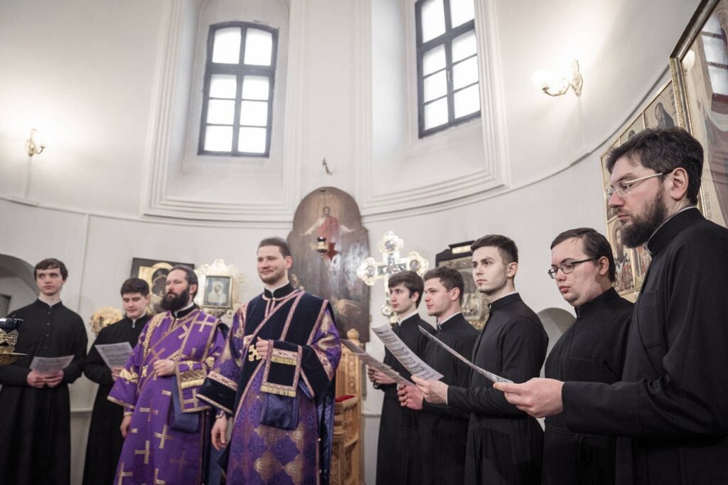 Богослужебные песнопения исполняли хор сестер Оршина монастыря и хор учащихся школы святителя Тихона Задонского.