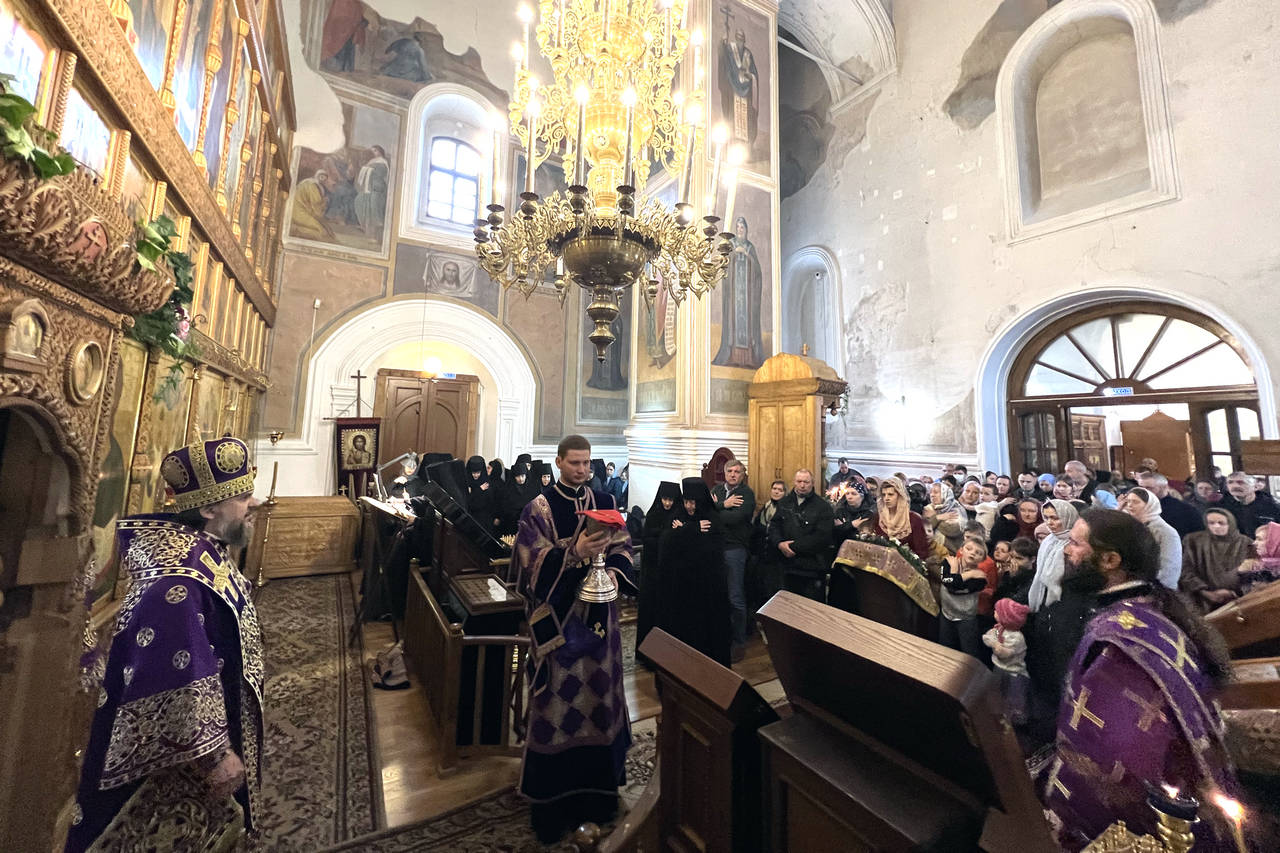 На сугубой ектении были вознесены прошения о восстановлении мира, об игумении Евпраксии с сестрами, учащих и учащихся обители, о губернаторе Тверской области и всех труждающихся на благо Тверской земли. Митрополит Амвросий прочитал молитвы о восстановлении Преображенского кафедрального собора и о скором восстановлении мира.