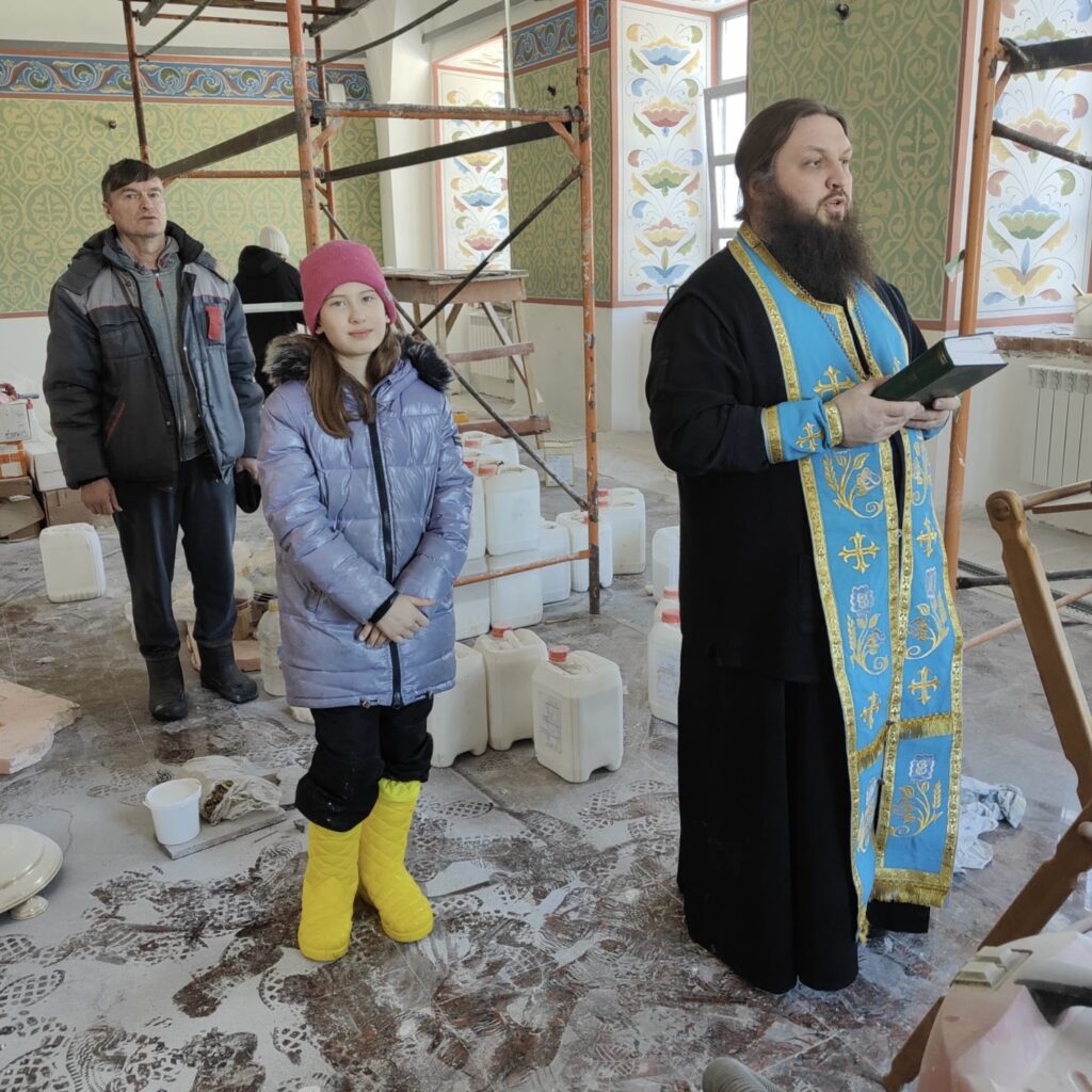 Митрополит Амвросий совершил в восстанавливающейся церкви молебен Покрову Пресвятой Богородицы, на который собрались немногочисленные местные жители и приезжие в летние месяцы. Во время молебна на сугубой ектении было произнесено прошение о воссоздателях храма, а по отпусте митрополиту Георгию и ктитору храма рабу Божию Глебу провозглашено многолетие.
