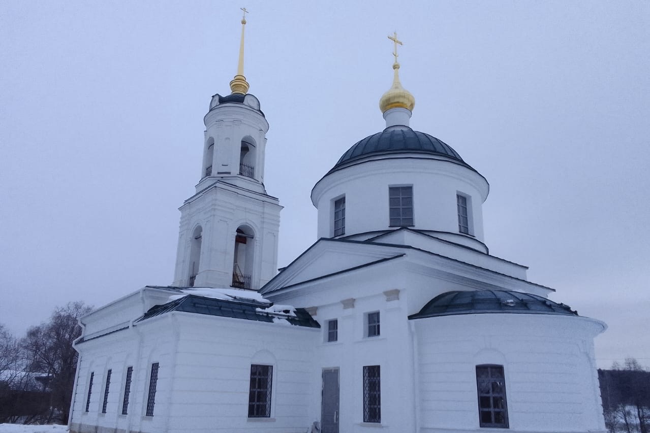 Покровская церковь с приделами святителя Николая и Рождества Христова построена на средства прихожан в 1819 году. Скромное здание, возведенное в несложных ампирных формах с куполом-ротондой, было сильно расширено в конце XIX — начале XX века. Вероятно, при этом было нарушено единство внутристенных связей. А в результате войны и длительного нахождения церкви без кровли произошла катастрофа: в конце 1990-х годов храм завалился. С тех пор его стены продолжают быстро разрушаться.