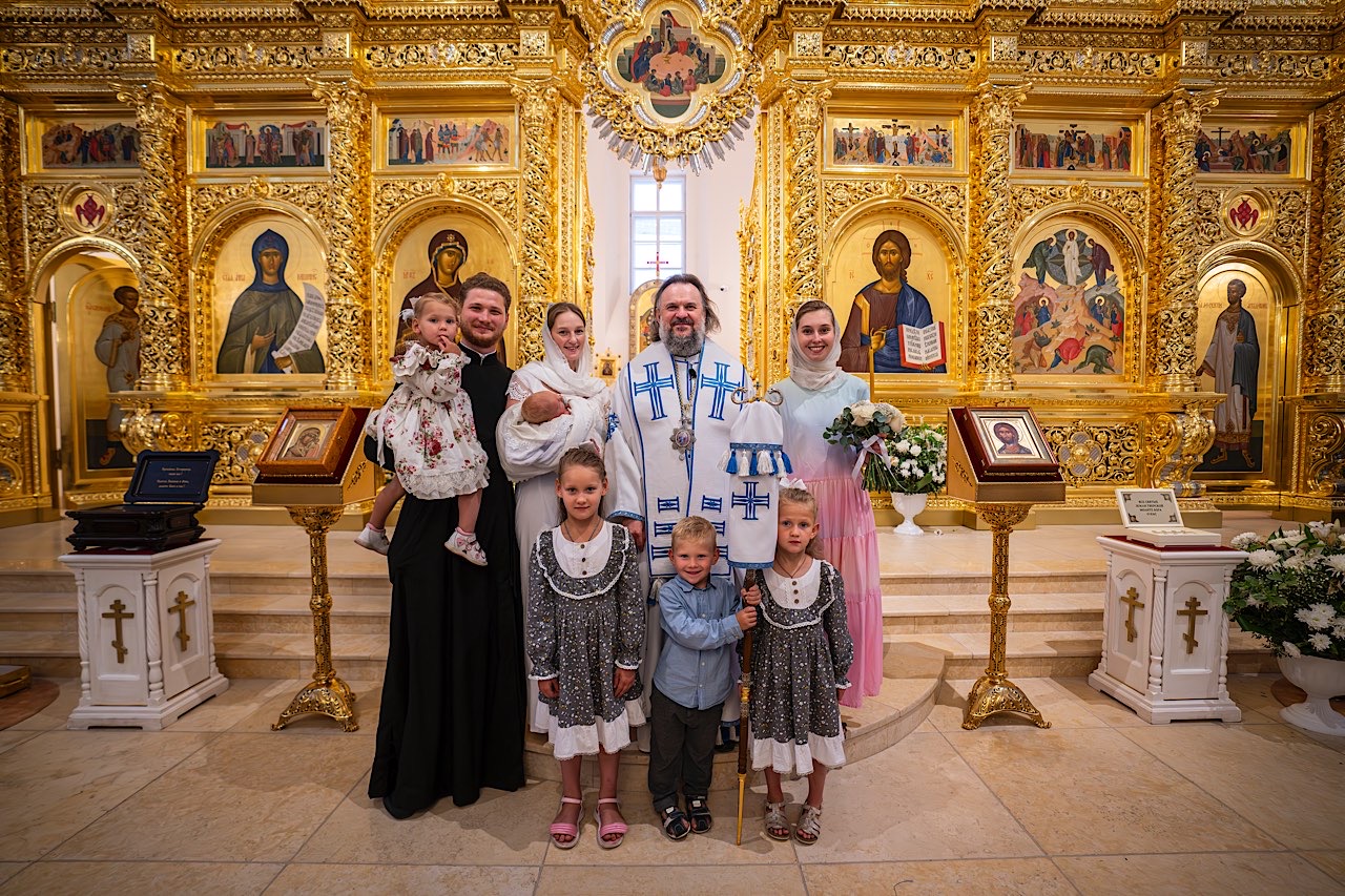 На крещении пели многочисленные многодетные родственники, прибывшие из разных регионов и епархий.