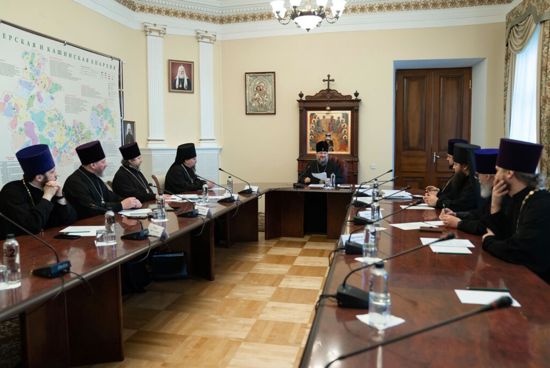 После совместной молитвы и вступительного слова митрополита Тверского и Кашинского Амвросия были рассмотрены и приняты в работу документы Управления делами Московской Патриархии: