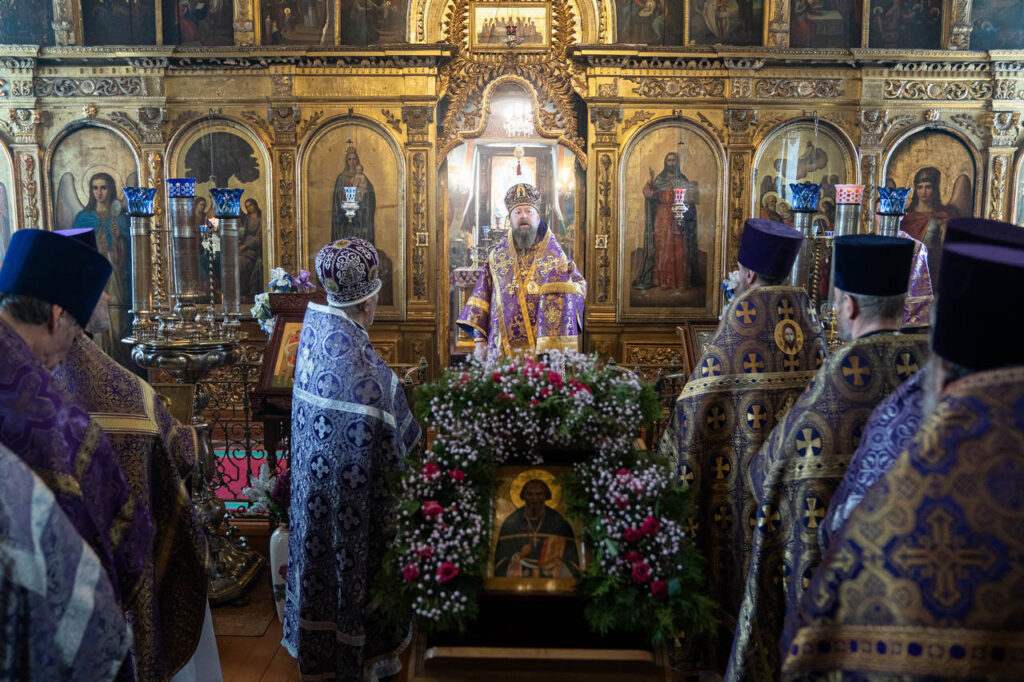 По заамвонной молитве было совершено славление перед иконой священномученика Николая Дмитрова. Архиерей прочитал молитву новомученику.