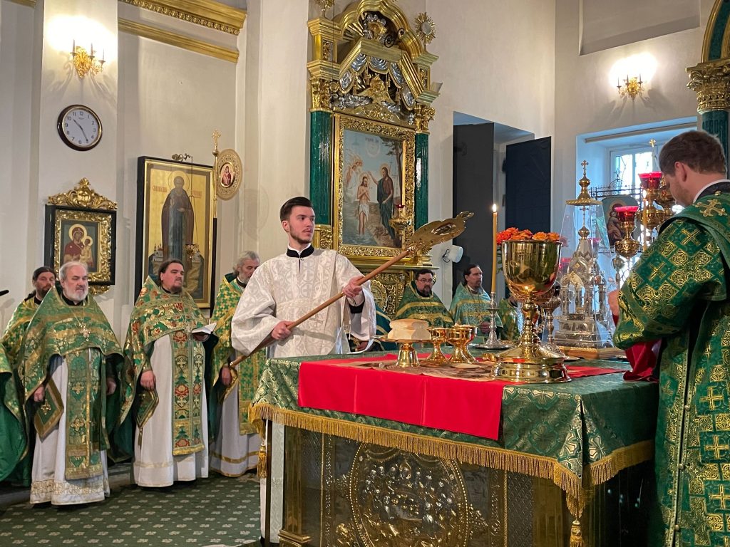 После Евхаристического канона митрополит Амвросий рукоположил иподиакона Михаила Быкова в сан диакона.