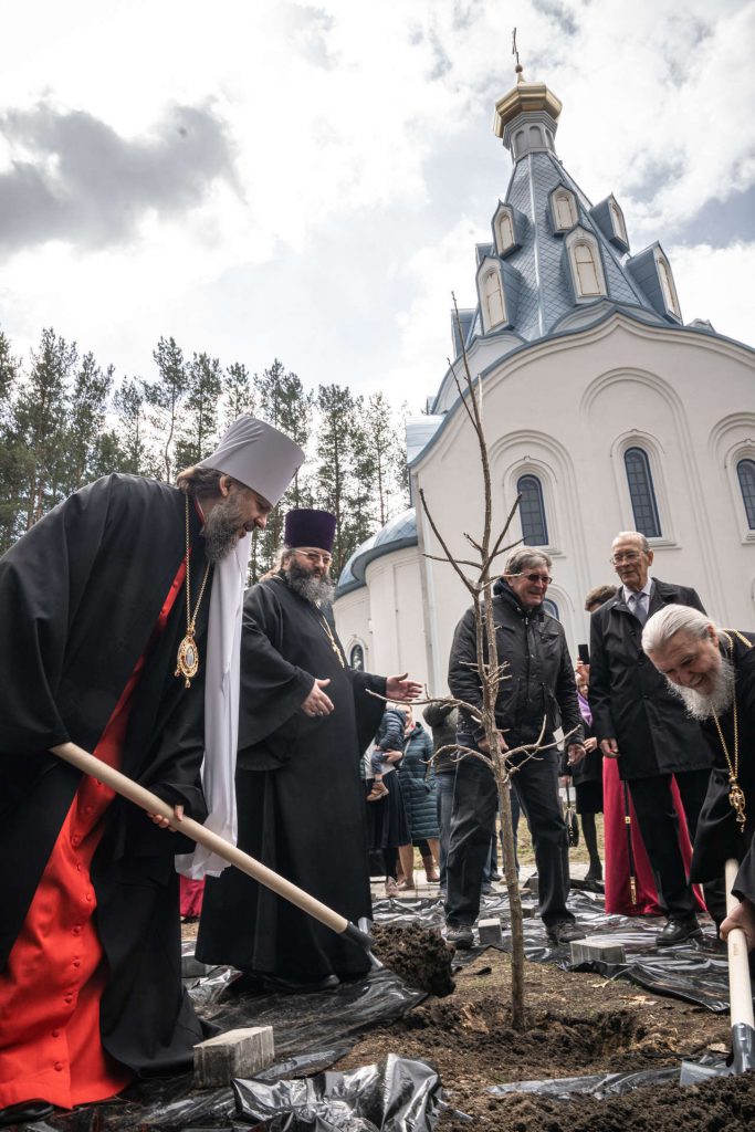 Затем митрополит Амвросий благословил всех молящихся в храме. Архиерей посадил саженец дуба на территории храма, затем осмотрел нижний храм и подписал антиминс для него. В нижнем храме для прихожан была организована трапеза после службы.