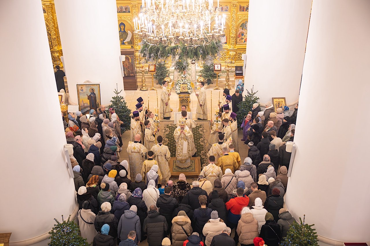 По окончании бдения архипастырь поздравил молящихся с Рождеством Христовым и пригласил всех причаститься на ночной Литургии, которая начнется в 23:00.