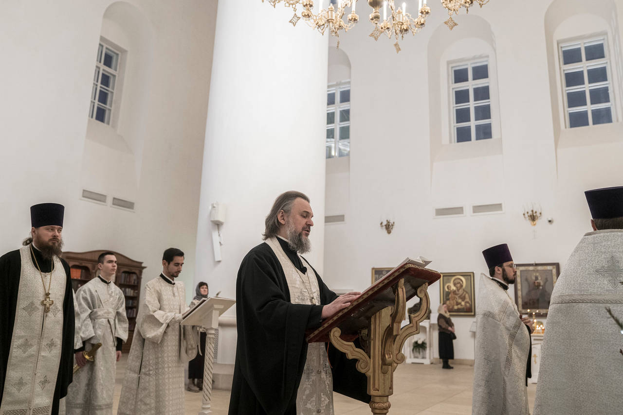 Архипастырю сослужило соборное духовенство: иерей Сергий Будков, протоиерей Владимир Цымбал, священники Максим Луканов и Филипп Исломов, иеромонах Антоний (Шкурметов), диакон Иоанн Зорин, протодиакон Роман Соколов, диакон Николай Кувшинов.