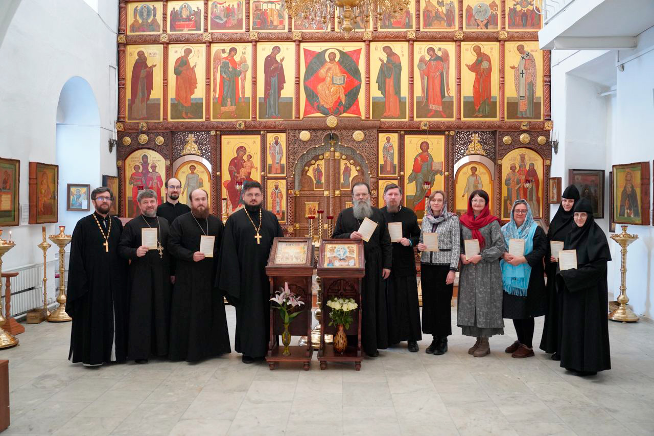 Защиту выпускных квалификационных работ принимала экзаменационная комиссия под председательством архиепископа Зеленоградского Саввы.