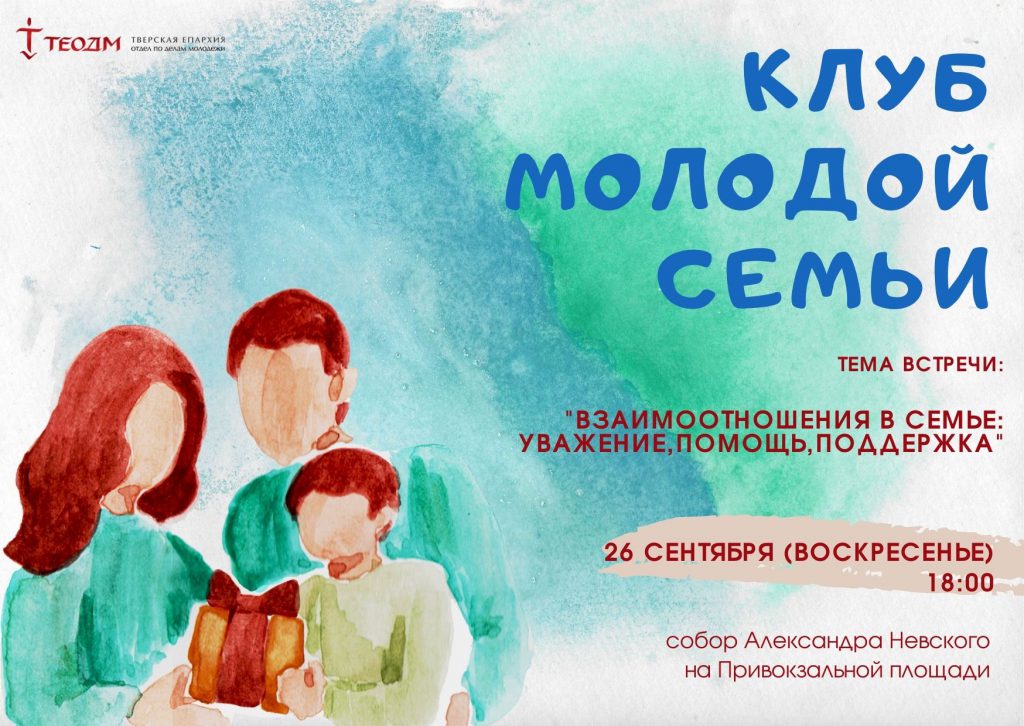 Клуб молодой семьи создан при Отделе по делам молодежи Тверской епархии в декабре 2020 года. Клуб создан для оказания поддержки молодым семьям, сталкивающимся с различными трудностями в первые годы супружеской жизни. Основная цель клуба заключается в укреплении престижа института семьи и духовно-нравственных качеств личности членов молодой семьи, оптимизация и гармонизация детско-родительских отношений, пропаганда созидательного и здорового образа жизни.