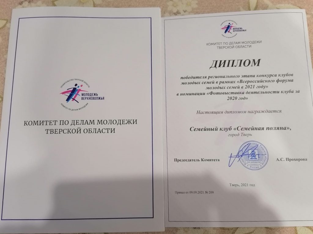 Клуб молодой семьи при Отделе по делам молодежи Тверской епархии стал победителем регионального этапа конкурса клубов молодых семей в рамках «Всероссийского форума молодых семей» в номинации «Фотовыставка деятельности клуба за 2020 год».