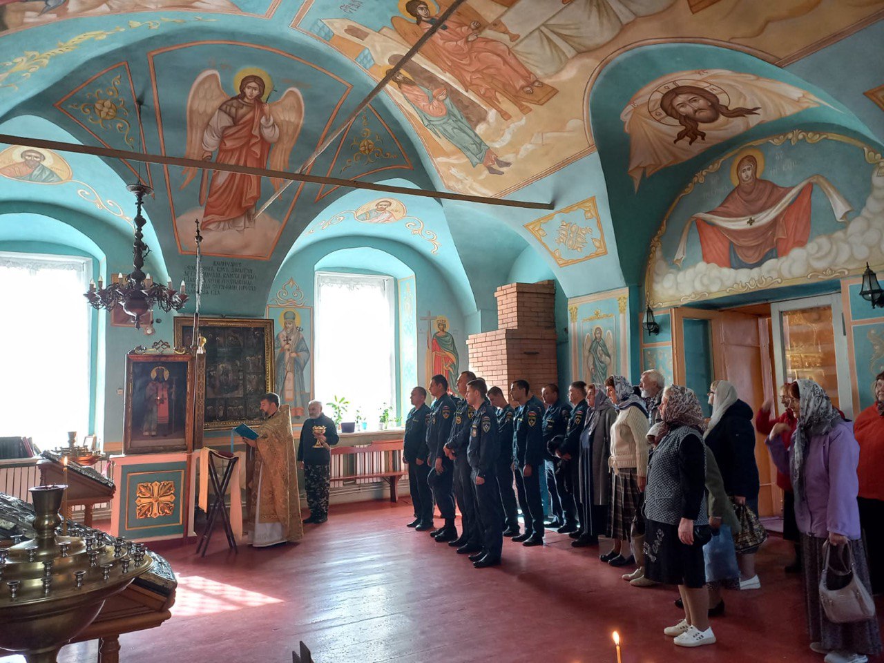 Уже стало доброй традицией участие в молебне в этот день сотрудников Пожарной части № 53 МЧС России в Ильинском храме г. Старица. Благочинный Старицкого церковного округа, настоятель храма протоиерей Владимир Марценюк совершил молебен перед иконой Божией Матери «Неопалимая купина», а затем благословил старицких пожарных и пожелал помощи Божьей в их нелегком труде на благо Отечества, отметив их героизм и мужество.