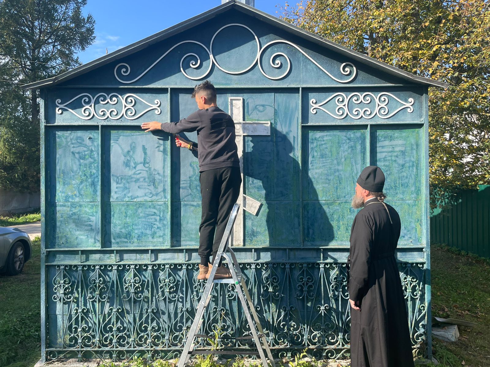 В течение нескольких дней ребята и взрослые собирались у часовни, чистили от старой краски. Затем обновили стены свежей краской, помыли окна, пол, почистили ковер, подсвечник.