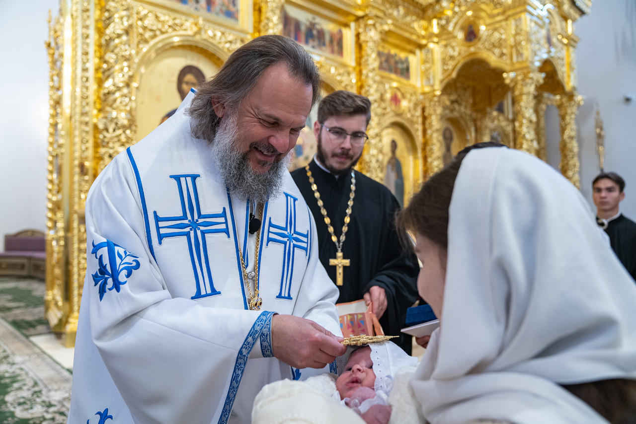 Крещаемый — младенец Дамиан, сын иерея Филиппа и Екатерины Исломовых, назван в честь священномученика Дамиана, архиепископа Курского.