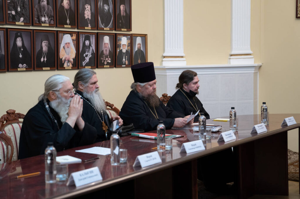 В заседании под председательством митрополита Тверского и Кашинского Амвросия приняли участие секретарь епархии игумен Борис (Тулупов), председатели епархиальных отделов.