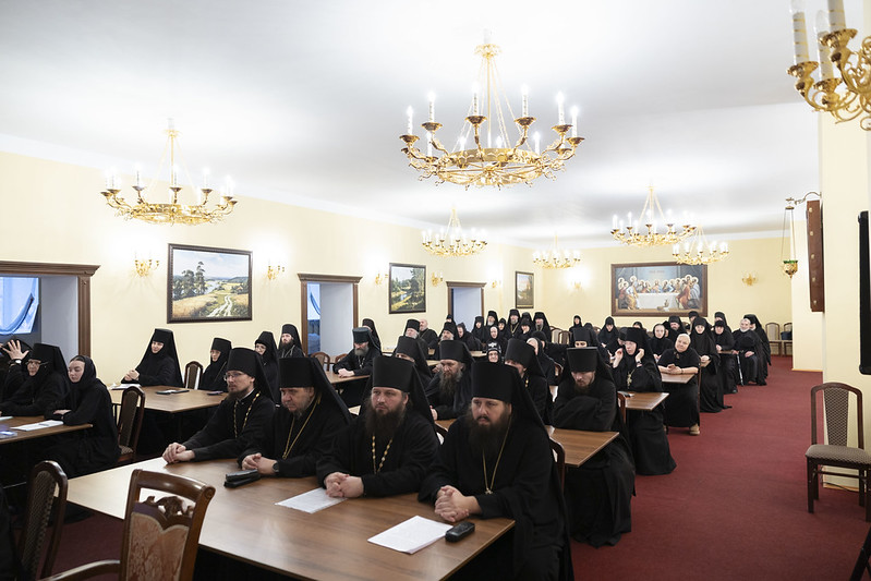 С докладом «Преемство древних монашеских традиций как основа формирования личности монашествующего» выступила настоятельница Вознесенского Оршина женского монастыря Тверской епархии игуменья Евпраксия (Инбер).