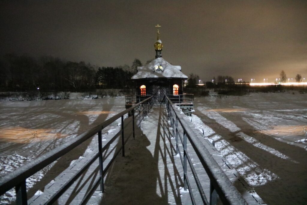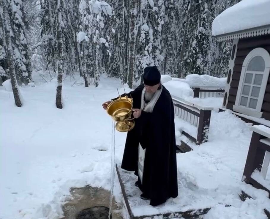 День начался с праздничной Божественной литургии. По её окончании сестры во главе с иеромонахом Владимиром Шевчуком крестным ходом прошли к реке. Для совершения чина была подготовлена специальная прорубь: лед расчистили и прорубили, чтобы получить доступ к воде истока реки.
