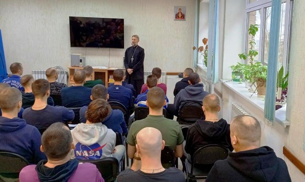 После богослужения протоиерей Пётр Дубяго провел беседу с учениками 8 класса на тему «Небесное воинство».