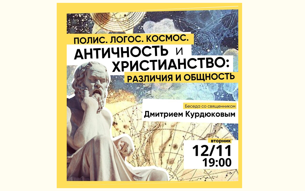 В «Пространстве возможностей “Дом 36“» 12 ноября в 19:00 состоится встреча с председателем Миссионерского отдела Тверской епархии протоиереем Дмитрием Курдюковым на тему «Полис, логос, космос. Античность и христианство: различия и общность».