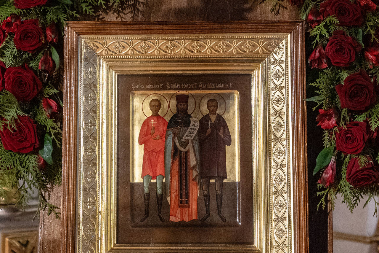 Мы собрались сегодня в этом храме для молитвы и почитания людей, которые жили сравнительно недавно, служили в этом храме, молились в нем, а потом отстаивали его от богоборцев. Сегодня мы чтим память претерпевших страдания за Христа и во утверждение на Руси Православия новомучеников Кимрских — служившего в этом храме священномученика Феодора пресвитера и убиенных с ним мучеников Анании и Михаила. Великое благословение и бесценный дар от Бога тем, кто служит и молится сегодня в этом храме — быть продолжателями дела людей, которые ныне предстоят Агнцу Божию, невидимо присутствуют среди нас и радуются тому, что их подвиг не был напрасным. Хотя они и не увидели нынешнего рассвета веры, но они видят его сейчас в мире горнем, видят, как люди наполняют этот храм.