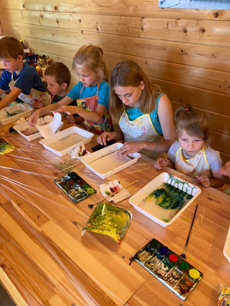 Социальная служба Кашинского благочиния организовала творческие занятия с детьми из неблагополучных семей. 12 августа темой такого занятия стала живопись по воде в технике «эбру».
