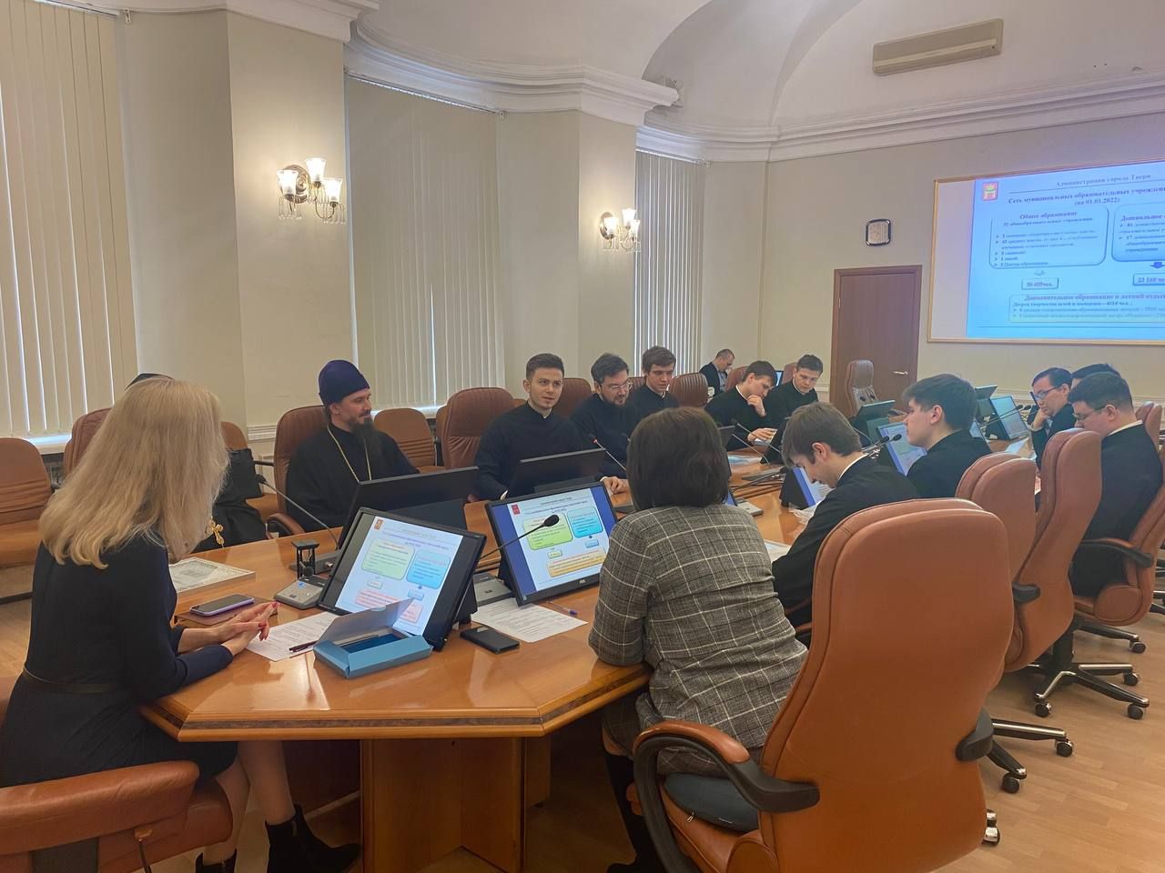 Обсуждение организационных вопросов проведения миссионерской практики в Тверской епархии состоялось 28 марта в зале заседаний администрации г. Твери. В нем приняли участие благочинные I и II Тверских церковных округов протоиерей Павел Сорочинский и протоиерей Вадим Желябовский, заместитель главы администрации г. Твери Л.Г. Хоменко, начальник Управления образования администрации г. Твери Н.В. Жуковская.