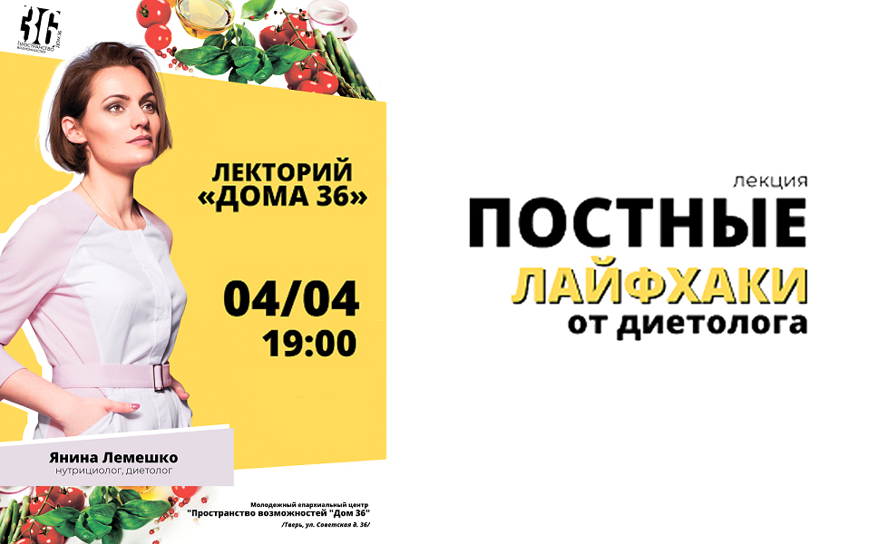 Приглашаем на лекцию «Постные лайфхаки от диетолога». Врач-диетолог, член Российской ассоциации диетологов, нутрициолог Янина Лемешко расскажет простые правила здорового поста:
