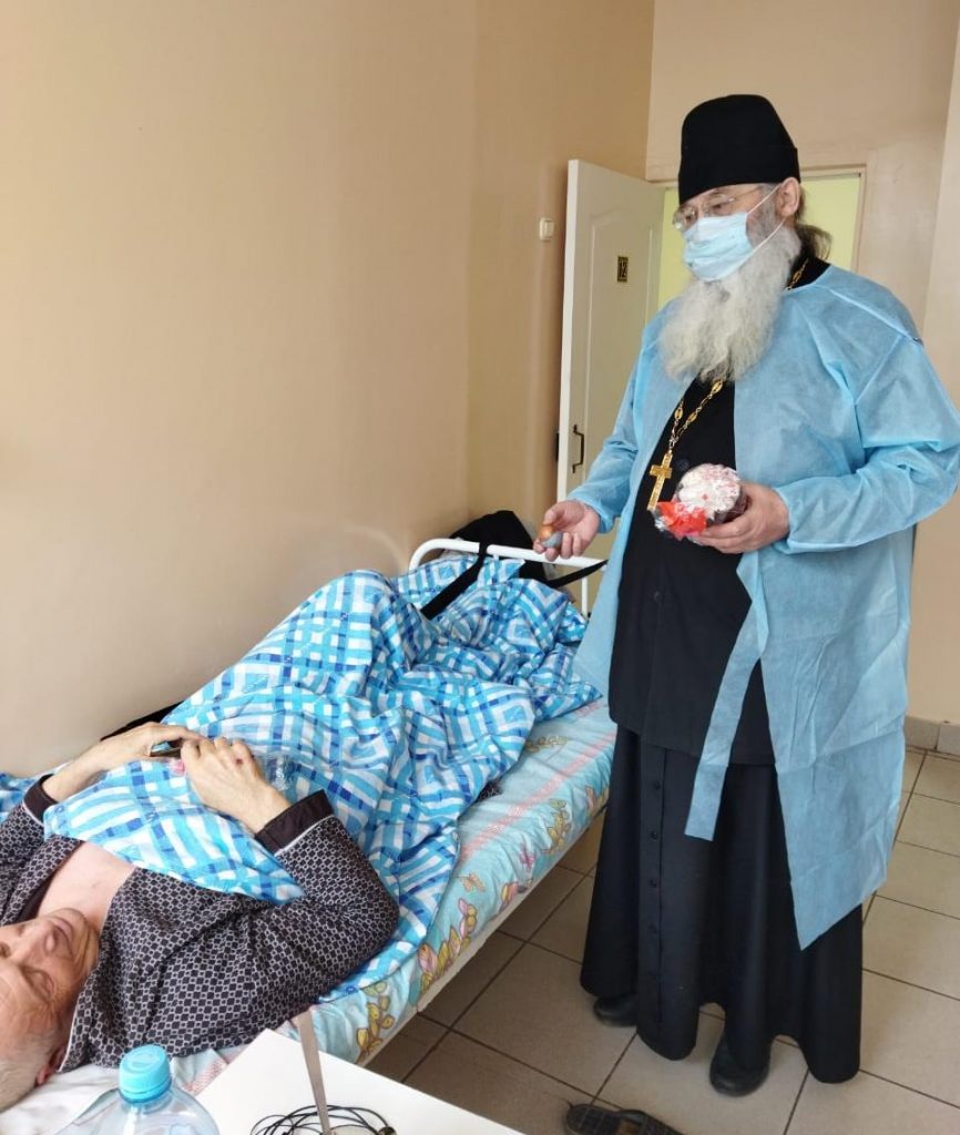 Священники поздравили больных с наступающим праздником Светлого Христова Воскресения, подарили пасхальные куличи и передали пожелания скорейшего выздоровления от митрополита Амвросия.