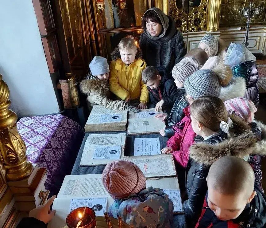 Первыми на выставку пришли четвероклассники Городенской православной гимназии имени протоиерея Алексия Злобина. Настоятель храма протоиерей Андрей Преображенский поговорил с гимназистами о самом празднике и подробно рассказал о каждом из представленных изданий — от времени их создания до богослужебного использования.