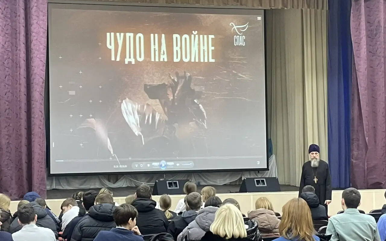 Перед началом сеанса к ребятам обратился настоятель храма в честь Успения Пресвятой Богородицы с. Завидово протоиерей Пётр Дубяго и настоятель храма в честь св. вмч. Георгия Победоносца д. Юрьево-Девичье Конаковского района протоиерей Александр Азаренков. Священнослужители предложили школьникам вместе поразмышлять о том, что можно назвать чудом и как это понятие раскрывается на войне. Старшеклассники поделились своими мыслями и примерами из жизни.