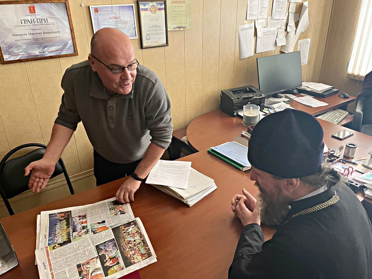 4 февраля в редакции газеты «Заря» состоялась рабочая встреча главного редактора Максима Малахова и благочинного Конаковского церковного округа протоиерея Петра Дубяго. Основой для обсуждения планов на 2022 год послужил опыт взаимодействия при подготовке материалов рубрики «Духовно-нравственное воспитание в жизни приходов».