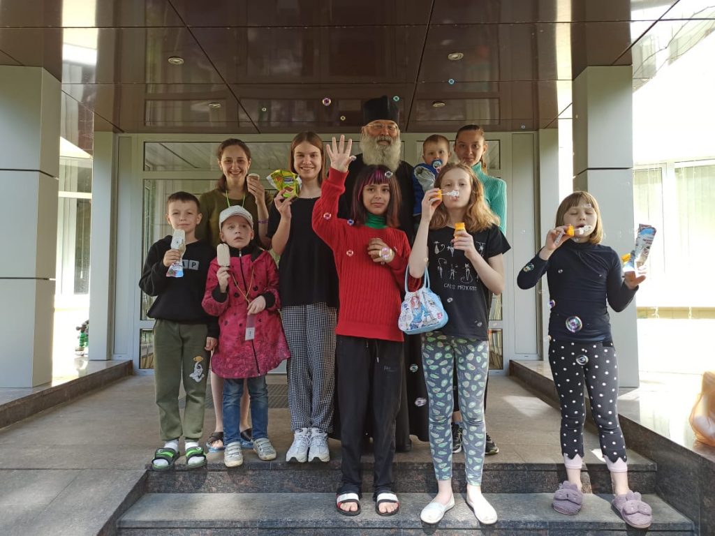 В настоящее время в санатории проживают 28 детей. Ребята очень обрадовались, увидев у себя в гостях батюшку, ведь многие из них уже знакомы с отцом Александром. Но особую радость доставило мороженое, которое в этот первый день лета священник подарил каждому ребенку. А мыльные пузыри, переданные батюшкой, создали праздничное настроение.