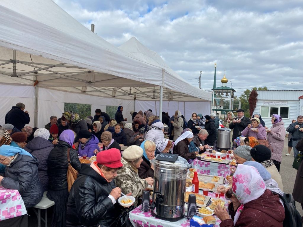 Для собравшихся была устроена общая трапеза во дворе храма. Для прихожан-инвалидов социальными работниками храма, волонтерами и Отделом по социальному служению Тверской епархии были собраны подарки с мясными консервами, молочными продуктами и сладостями.