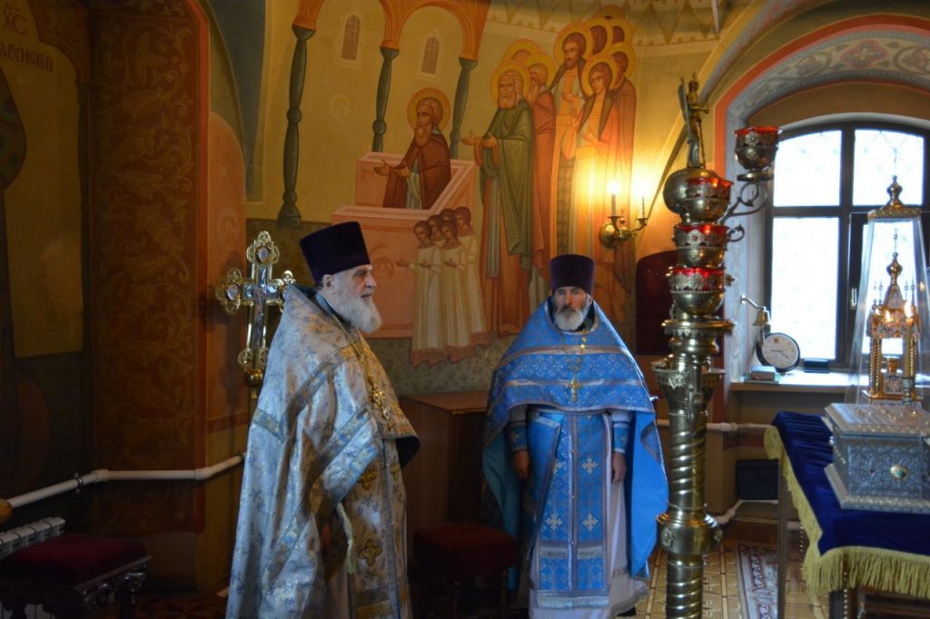 Накануне перед ковчегом со святынями был отслужен водосвятный молебен с чтением акафиста.