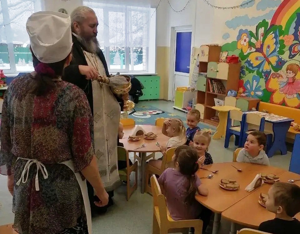Настоятель храма в честь преподобного Сергия Радонежского в с. Дмитрова Гора священник Антоний Богдюн встретился с дошкольниками и рассказал им о традициях и обычаях праздника, а затем ответил на многочисленные вопросы.