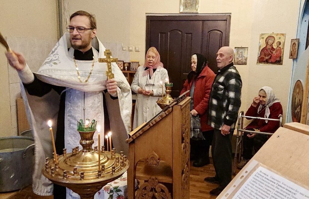 В домовом храме геронтологического центра священнослужитель совершил чин Великого освящения воды. Затем он поздравил собравшихся на молитву постояльцев с праздником Крещения Господня и ответил на вопросы.