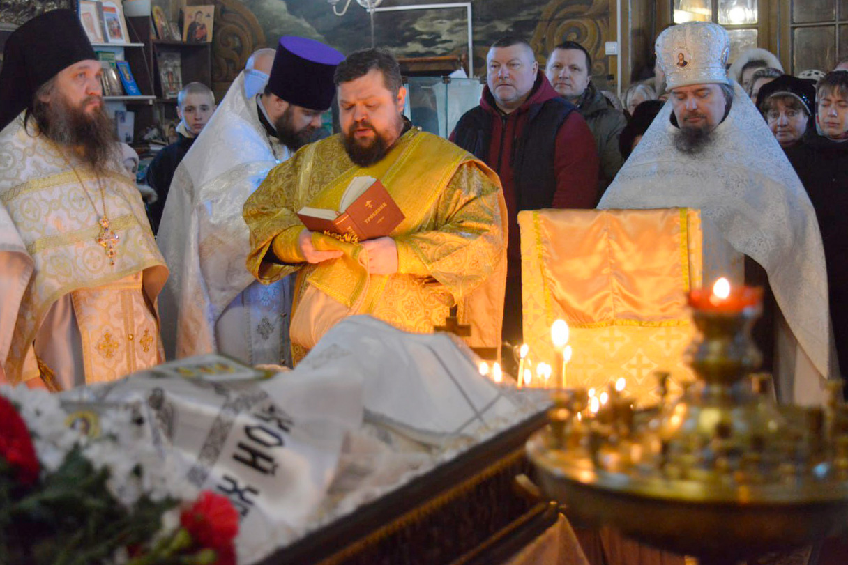 После Литургии архимандрит Борис (Тулупов) в сослужении духовенства совершил чин отпевания.