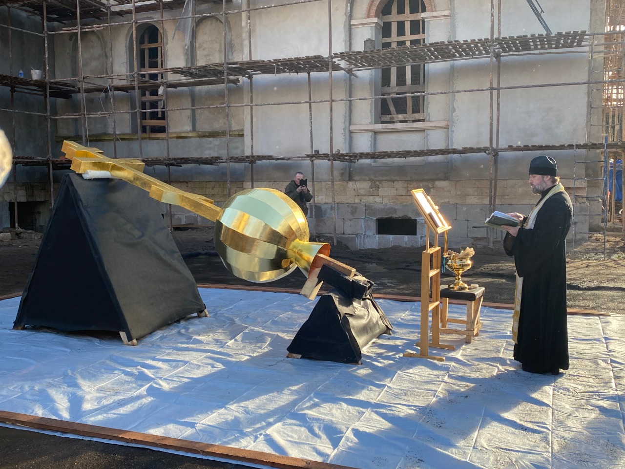 6 ноября в Димитриевскую родительскую субботу по благословению митрополита Тверского и Кашинского Амвросия, настоятель Спасо-Преображенского собора г. Торжка протоиерей Вадим Капитонов совершил освящение надкупольного креста Входоиерусалимского храма входящего в соборный комплекс.