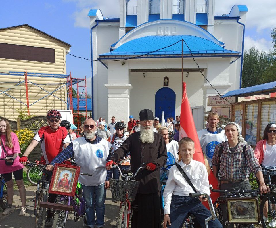 Перед началом велопробега участники пропели «Царю Небесный…».