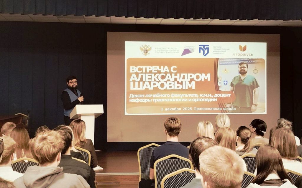 2 декабря на базе Тверской епархиальной школы состоялась встреча учащихся школ города и Тверского полиграфического колледжа с врачом-волонтером Александром Николаевичем Шаровым, работавшим в зоне СВО, и активистами патриотического движения Тверского государственного медицинского университета «Я горжусь».