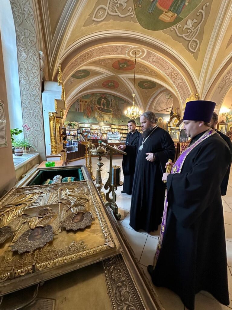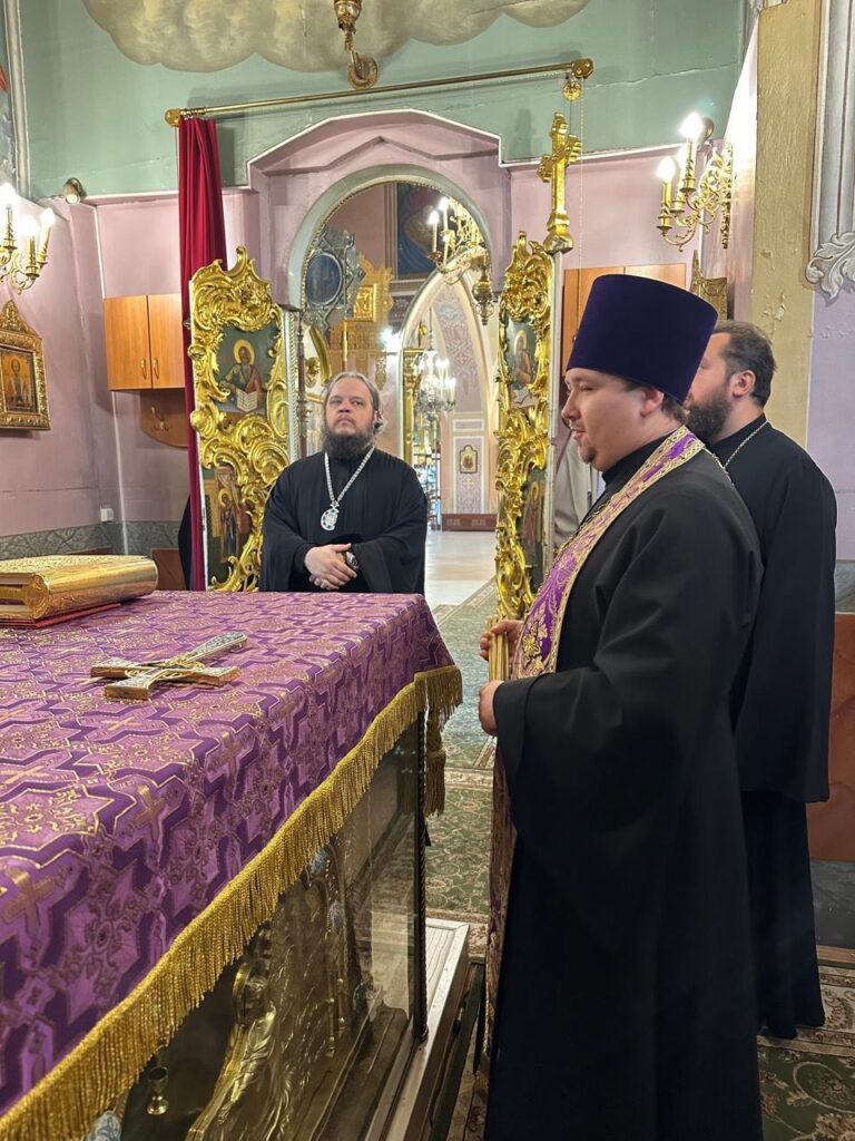 В Воскресенском соборе владыка совершил молебен с акафистом перед мощами своего небесного покровителя преподобноисповедника Сергия (Сребрянского). Ему сослужили секретарь Борисоглебской епархии иерей Павел Приступ, протодиакон Воскресенского собора Михаил Мельник. На богослужении пели протоиерей Владимир Цымбал, иерей Максим Луканов, протодиакон Роман Соколов.