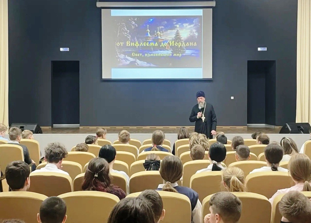 Священнослужитель пообщался с ребятами в формате живой беседы на тему «От Вифлеема до Иордана». Он рассказал о значении Рождества Христова, его традициями и символами — звездой, вертепом, подарками.