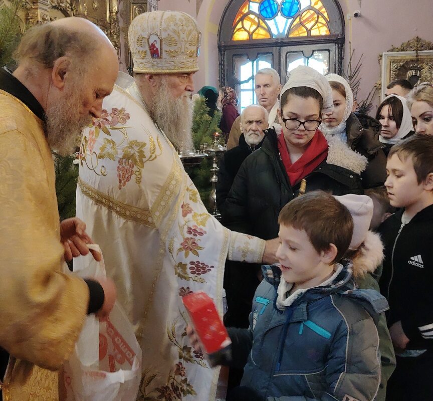 В завершении богослужения благочинный Торжокского церковного округа священник Николай Алексеев поздравил всех собравшихся с праздником и вручил всем детям сладкие рождественские подарки.