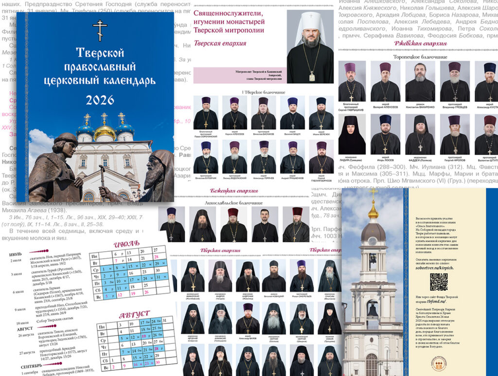 Особенность нового издания – публикация сведений о святых, совершивших свой подвиг на земле Верхневолжья, и памятных церковных датах в 2026 году, связанных с историей Тверской митрополии.